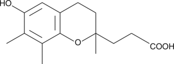 α-Tocotrienol is an antioxidant and a form of vitamin E that has been found in rice bran and has neuroprotective properties.{3679,14290,14292,52764} It reduces cell death induced by hydrogen peroxide, paraquat, S-nitrocysteine, SIN-1 (Item No. 82220), or L-buthionine-(S,R)-sulfoximine (BSO; Item No. 14484) in rat striatal cultures when used at concentrations ranging from 0.1 to 10 µM.{14290} Cytosolic microinjection of α-tocotrienol prevents glutamate-induced cell death and phosphorylation of 12-lipoxygenase (12-LO) in HT4 neurons.{14292} It reduces glutamate-induced cytosolic and mitochondrial production of reactive oxygen species (ROS), accumulation of N-terminally truncated Bcl-xL (ΔN-Bcl-xL), and cell death in primary rat hippocampal neurons.{52764} α-Tocotrienol (50 mg/kg) reduces infarct size in a spontaneously hypertensive rat model of stroke induced by tandem right common carotid artery and middle cerebral artery occlusion.{14292} [Matreya, LLC. Catalog No. 2109]