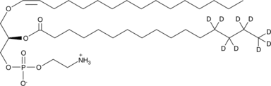1-1(Z)-Hexadecenyl-2-palmitoyl-d9-sn-glycero-3-PE is intended for use as an internal standard for the quantification of 1-1(Z)-hexadecenyl-2-palmitoyl-sn-glycero-3-PE (Item No. 28349) by GC- or LC-MS. 1-1(Z)-Hexadecenyl-2-palmitoyl-sn-glycero-3-PE is a plasmalogen that contains 1(Z)-hexadecanoic acid and palmitic acid (Item No. 10006627) at the sn-1 and sn-2 positions, respectively.