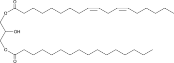 1-Linoleoyl-3-palmitoyl-rac-glycerol is a diacylglycerol that contains linoleic acid (Item Nos. 90150 | 90150.1 | 21909) at the sn-1 position and palmitic acid (Item No. 10006627) at the sn-3 position. It has been found in wheat bran extracts and dry-cured, but not raw, Iberian ham.{51025,42670}