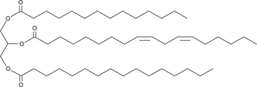 1-Myristoyl-2-linoleoyl-3-palmitoyl-rac-glycerol is a triacylglycerol that contains myristic acid (Item No. 13351), linoleic acid (Item Nos. 90150 | 90150.1 | 21909), and palmitic acid (Item No. 10006627) at the sn-1, sn-2, and sn-3 positions, respectively. It has been found in palm and vegetable oils.{53094,53095}