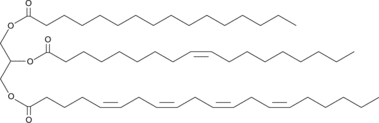 1-Palmitoyl-2-oleoyl-3-arachidonoyl-rac-glycerol is a triacylglycerol that contains palmitic acid (Item No. 10006627), oleic acid (Item Nos. 90260 | 24659), and arachidonic acid (Item Nos. 90010 | 90010.1 | 10006607) at the sn-1, sn-2, and sn-3 positions, respectively. It has been found in lipid extracts from whole rat retina.{46606}