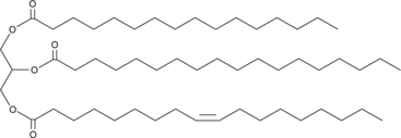 1-Palmitoyl-2-stearoyl-3-oleoyl-rac-glycerol is a triacylglycerol that contains palmitic (Item No. 10006627), stearic (Item No. 10011298), and oleic acid (Item Nos. 90260 | 24659) at the sn-1, sn-2, and sn-3 positions, respectively. It has been detected in RAW 264.7 cells by neutral loss MS.{49112} Increased serum levels of 1-palmitoyl-2-stearoyl-3-oleoyl-rac-glycerol are a potential biomarker for non-alcoholic fatty liver disease (NAFLD).{49113}