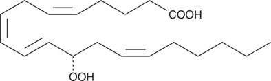 12(S)-HpETE is a monohydroperoxy polyunsaturated fatty acid (PUFA) produced by the action of platelet or leukocyte 12-lipoxygenase (12-LO) on arachidonic acid.{452,3959} It activates human blood leukocyte 5-LO, resulting in the synthesis of 5(S)-HETE, leukotriene B4 (LTB4), and 5(S),12(S)-DiHETE.{452} Rat lung metabolizes 12(S)-HpETE to 8,11,12- and 10,11,12-trihydroxyeicostrienoic acids.{194} 12(S)-HpETE is the mediator of many biological functions, including induction of c-fos and c-jun, activation of AP-1, and endothelium-dependent vasoconstriction.{6182,4194} It mediates the inhibitory synaptic response to FMRF-amide in Aplysia sensory neurons{624} and inhibits Ca2+/calmodulin-dependent protein kinase II from rat brain cortex.{2366,624}