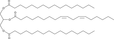 1,3-Dipalmitoyl-2-linoleoyl glycerol is a triacylglycerol that contains palmitic acid (Item No. 10006627) at the sn-1 and sn-3 positions and linoleic acid (Item Nos. 90150 | 90150.1 | 21909) at the sn-2 position. It has been found in the palm stearin fraction of palm oil and as a minor component of soybean germ oil.{42809,42810}