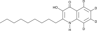 2-nonyl-3-hydroxy-4-Quinolone-d4 is intended for use as an internal standard for the quantification of 2-nonyl-3-hydroxy-4-quinolone (Item No. 9002699) by GC- or LC-MS. 2-nonyl-3-hydroxy-4-Quinolone is a bacterial quorum-sensing signal molecule produced by P. aeruginosa.{65266} It activates a biosensor for the P. aeruginosa gene pqsA, which encodes the first enzyme in the P. aeruginosa biosynthesis of the bacterial quorum-sensing signal molecule 2-heptyl-3-hydroxy-4-quinolone (Item No. 29186), in a concentration-dependent manner.{65265}