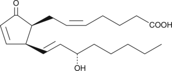 8-iso Prostaglandin A2 (8-iso PGA2) is an isoprostane. It is produced by the non-enzymatic oxidation of arachidonic acid (Item Nos. 90010 | 90010.1 | 10006607).{7324,14267} 8-iso PGA2 (100 µM) induces calcium influx in HEK293 cells expressing human transient receptor potential ankyrin 1 (TRPA1) and isolated mouse trigeminal neurons.{21769} It potentiates glutamate-induced cytotoxicity and decreases glutathione (GSH) levels in HT22 hippocampal cells when used at concentrations of 1 and 30 µM, respectively.{16387} 8-iso PGA2 (10 µM) inhibits VEGF-induced migration and tube formation of human coronary artery endothelial cells, an effect that can be reversed by the TP receptor antagonist SQ 29,548 (Item No. 19025).{20091}