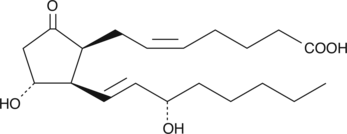 8-iso PGE2 is one of several isoprostanes produced from arachidonic acid during lipid peroxidation.{1943} It is a potent renal vasoconstrictor in the rat.{1943,5157} 8-iso PGE2 inhibits U-46619 or I-BOP-induced platelet aggregation with IC50 values of 0.5 and 5 µM, respectively.{1258} When infused into the renal artery of the rat at a concentration of 4 µg/kg/min, 8-iso PGE2 decreases the GFR and renal plasma flow by 80% without affecting blood pressure.{1943}