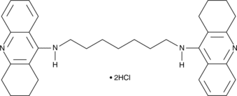 Tacrine is an amino acridine compound that inhibits acetylcholinesterase (AChE), and has been proposed as a clinical treatment for Alzheimer’s disease.{6603} bis(7)-Tacrine is a tacrine dimer, linked via a 7-carbon alkyl spacer. It inhibits AChE with an IC50 of 0.40 nM, making it more than 1,000 times more potent than tacrine.{12097} bis(7)-Tacrine also protects against hydrogen peroxide induced apoptosis in rat pheochromocytoma cells.{12095}