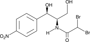 Bromamphenicol is a dibrominated derivative of the antibiotic chloramphenicol.{42777} It inhibits rat liver mitochondrial and E. coli protein synthesis by 90.6 and 98.8%, respectively, when used at a concentration of 93 ?M, and inhibits DNA synthesis in human lymphoblastoid cells by 83% at 1 mM. Bromamphenicol can also bind to the major adhesin subunit DraE from E. coli.{42778}