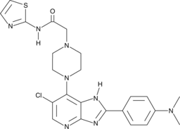 | Smiles | CN(C)C(C=C1)=CC=C1C2=NC3=NC=C(Cl)C(N4CCN(CC(NC5=NC=CS5)=O)CC4)=C3N2 |