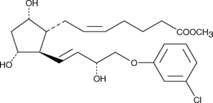 (+)-Cloprostenol is a synthetic analog of prostaglandin F2? (PGF2?). It is an FP receptor agonist and a potent luteolytic agent in rats and hamsters. It is 200 times and 100 times more potent than PGF2? in terminating pregnancy in hamsters and rats, respectively, without the side effects associated with PGF2?.{1182} Cloprostenol is also used in veterinary medicine as a luteolytic agent for the induction of estrus and the treatment of reproductive disorders in cattle, swine, and horses. (+)-Cloprostenol methyl ester is a more lipid soluble form of cloprostenol, which may be more amenable for certain formulations.