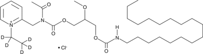 CV-6209-d5 contains five deuterium atoms at the 1, 1, 2, 2, and 2 positions of the ethyl pyridinium moiety. It is intended for use as an internal standard for the quantification of CV-6209 (Item No. 15955) by GC- or LC-mass spectrometry. CV-6209 is a potent antagonist of the platelet-activating factor (PAF) receptor, inhibiting aggregation of rabbit and human platelets induced by PAF with IC50 values of 75 and 170 nM, respectively.{27971} It has little action on platelet aggregation induced by arachidonic acid, ADP, or collagen.{27971} CV-6209 is bioavailable, as it prevents PAF-induced hypotension in rats, while not blocking hypotension triggered by arachidonic acid (Item No. 90010), histamine, bradykinin (Item No. 37408), or isoproterenol (Item No. 15592).{27971} CV-6209 is used to study the role of PAF receptor signaling in vitro and in vivo.{27973,27972}