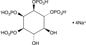 D-myo-Inositol-1,2,3,6-tetraphosphate (Ins(1,2,3,6)-P4) is one of the many inositol phosphate (InsP) isomers that act as small, soluble second messengers in the transmission of cellular signals.{8672,8344,13727} The most studied InsP, Ins(1,4,5)-P3 is a second messenger produced in cells by phospholipase C (PLC)-mediated hydrolysis of phosphatidylinositol-4,5-biphosphate.{2429,5714} Binding of Ins(1,4,5)-P3 to its receptor on the endoplasmic reticulum results in opening of the calcium channels and an increase in intracellular calcium.{5714,4096} Ins(1,2,3,6)-P3 (tested as the meso compound) is 100-fold less potent than Ins(1,4,5)-P3 at initiating Ca2+ release when injected into Xenopus oocytes.{13725}