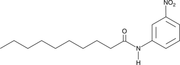 Decanoyl m-Nitroaniline (DemNA) is one of several nitroaniline fatty acid amides which can be used to measure fatty acid amide hydrolase (FAAH) activity.{8928} FAAH is a relatively unselective enzyme in that it accepts a variety of amide head groups other than the ethanolamine of its endogenous substrate anandamide (arachidonyl ethanolamide; AEA). It also will hydrolyze fatty acid amides with fewer carbons and fewer double bonds than arachidonate. Exposure of DemNA to FAAH activity results in the release of the yellow colorimetric dye m-nitroaniline (? = 13,500 at 410 nm) This allows the fast and convenient measurement of FAAH activity using a 96 well plate spectrophotometer.