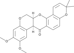 Rotenoids, deriving from the flavonoid family of compounds, act as chemopreventive agents that inhibit NADH:ubiquinone oxidoreductase activity and suppress phorbol ester-induced ornithine decarboxylase (ODC) activity.{16334} The rotenoid compound deguelin, originally isolated from the bark of M. sericea (Leguminosae) to be used as an insecticide and fish poison, has chemopreventive and chemosensitizing effects in models of skin, mammary, colon, and lung carcinogenesis.{16333,16330,16332} Deguelin inhibits cell growth (IC50 = 8 M), blocks PI3K/Akt activation, suppresses COX-2 expression, and induces apoptosis in premalignant and squamous human bronchial epithelial (HBE) cells without affecting normal HBE cells.{16333,16331} At 6 mg/kg, deguelin induces Parkinson’s disease-like symptoms in rats after six days of subcutaneous infusion and therefore may also serve as a useful model for Parkinson’s disease research.{16314}