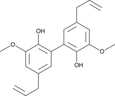 Dieugenol is a neolignan that has been found in N. leucantha and has antioxidative and antiprotozoal activities.{52026,52027} It inhibits the formation of thiobarbituric acid reactive substances (TBARS) and scavenges superoxide anions, but not hydroxyl radicals, in cell-free assays.{52026} It has anti-trypanosomal activity against T. cruzi amastigotes and trypomastigotes (IC50s = 15.1 and 11.5 µM, respectively) but is cytotoxic to NCTC L-929 fibroblasts with a 50% cytotoxic concentration (CC50) value of 58.2 µM.{52027} Dieugenol (15 µM) disrupts the integrity of the T. cruzi trypomastigote plasma membrane but does not induce the production of reactive oxygen species (ROS) in trypomastigotes or LPS-stimulated and unstimulated isolated mouse peritoneal macrophages.