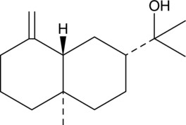 ?-Eudesmol is a sesquiterpene that has been found in a variety of plants, including Cannabis, and has diverse biological activities.{42303,36865} It is a noncompetitive antagonist of nicotinic acetylcholine receptors (nAChRs) that decreases the open time and opening frequency of nAChR channels when used at concentrations of 40 and 80 µM and increases the decay phase of depolarization when used at a concentration of 100 µM in isolated mouse diaphragm muscle.{36866} ?-Eudesmol (50-100 µM) inhibits VEGF- and bFGF-induced proliferation in human umbilical vein endothelial cells (HUVECs).{36867} It also inhibits proliferation of HeLa, SGC-7901, and BEL-7402 cells when used at concentrations ranging from 10 to 100 µM and reduces tumor growth in H22 and S-180 mouse tumor models when administered at doses ranging from 2.5 to 5 mg/kg. ?-Eudesmol is an agonist of the transient receptor potential (TRP) receptor subtypes TRPA1, TRPV3, and TRPM8 and increases food intake and plasma levels of ghrelin in rats.{36868,36869}