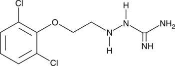 Guanoclor is an antihypertensive agent that binds to non-adrenergic sites in pig kidney membranes (IC50 = 10 nM).{45588,45589} It inhibits the Na+/H+ exchanger in pig kidney membranes (IC50 = 1 ?M) and cell-free bovine dopamine ?-hydroxylase (IC50 = 90 ?M). Guanoclor inhibits electrically stimulated norepinephrine release from spleen.{45588} It decreases norepinephrine levels in dog heart, spleen, hypothalamus, and adrenal gland when administered at a dose of 10 mg/kg per day for six weeks. It decreases adrenal catecholamine levels in rats when administered at a dose of 20 mg/kg per day for six weeks. Guanoclor (20 mg/kg) decreases experimentally induced hypertension and the tyramine-induced pressor response and increases the norepinephrine-induced pressor response in non-anesthetized dogs.
