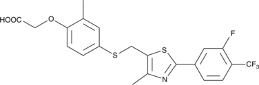 The transcription factor peroxisome proliferator-activated receptor δ (PPARδ) is a member of the superfamily of nuclear hormone receptors and is implicated both in lipid metabolism and in the regulation of genes with potential roles in neurotoxicity. GW 0742 is a selective PPARδ agonist (EC50 = 1.1 nM) that exhibits 1,000-fold selectivity over the other human PPAR subtypes.{11580} GW 0742 exhibits time-dependent neuroprotection in low KCl-induced apoptosis in cerebellar granule neuronal cultures. Despite the neuroprotective properties observed, prolonged (48h) incubation with GW 0742 produced significant inherent toxicity. This cell death was determined to be apoptotic as identified with the TUNEL assay.{14765}