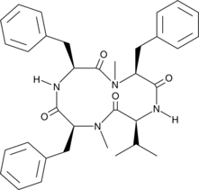 | Smiles | O=C([C@H](CC1=CC=CC=C1)NC([C@H](CC2=CC=CC=C2)N(C)C([C@H](C(C)C)N3)=O)=O)N(C)[C@@H](CC4=CC=CC=C4)C3=O |