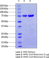 HMG-CoA reductase (HMGR) is a highly regulated enzyme found on the endoplasmic reticulum (ER) membrane. It is bound to the ER membrane by a multi-pass 339 amino acid N-terminal transmembrane domain while the carboxy terminal catalytic region projects into the cytosol.{26861,26862} HMGR is controlled by feedback regulation from sterols and non-sterol metabolites derived from mevalonate.{26862,26863,26860} Binding of cholesterol derived from internalized LDL receptors suppresses HMGR. The enzyme is responsible for catalyzing the rate-limiting step in cholesterol biosynthesis. Mevalonate, which is converted to isopentenyl pyrophosphate, is the building block for cholesterol and non-sterol isoprenoids. The four-electron reduction of HMG-CoA catalyzed by HMGR to form mevalonate is the committed step in the biosynthesis of sterols and isoprenoids.{15309} Potent inhibitors of HMGR, collectively called statins, are effective in lowering mortality due to hypercholesterolemia by lowering serum cholesterol levels.{26864}