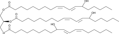 Hydroxy linoleins are a mixture of 132 possible isomers of mono-, di-, and tri-hydroxy compounds produced by the autoxidation of trilinolein and subsequent reduction of the hydroperoxides. Autoxidation of linoleic acid containing triglycerides (for example, trilinolein) in vivo could result in the formation of hydroperoxides, which could then be reduced by peroxidases to produce hydroxy linoleins. Because of their inherent stability compared to the precursor hydroperoxides, hydroxy linoleins are potential markers of triglyceride lipid peroxidation in vivo.
