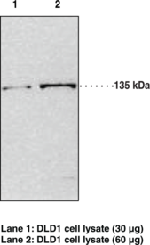 Jumonji Domain Containing 2A (JMJD2A) is a lysine-specific demethylase that catalyzes the demethylation of histone H3 at lysine residues 9 and 36 and histone H1.4 at lysine residue 26.{17970,22334,64097} It is composed of the JmjN N-terminal domain, JmjC catalytic domain, two plant homeodomains (PHDs), and two tudor domains that recognize the methylated histones.{64097} JMJD2A is ubiquitously expressed and localized to the nucleus.{18036} It is involved in the regulation of gene expression in a context-dependent manner, having roles in both transcriptional silencing and activation of androgen and estrogen receptors (ERs).{64097} Knockdown of JMJD2A inhibits the proliferation of ER-positive and -negative breast cancer cells and induces apoptosis and cell cycle arrest in colon cancer cells. It is overexpressed in various cancers, including prostate, lung, and colorectal, as well as glioblastomas and endometrial carcinomas, and is associated with higher tumor grade and decreased disease-free survival in breast cancer.{64098} Cayman’s JMJD2A Polyclonal Antibody can be used for Western blot (WB). The antibody recognizes JMJD2A at 135 kDa from human samples.