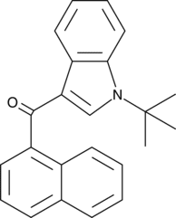 JWH 073 is a synthetic cannabinoid (CB) that activates both the central cannabinoid (CB1) and peripheral cannabinoid (CB2) receptors (Ki = 8.9 and 38 nM, respectively).{16797} This cannabimimetic compound has been found in herbal blends.{19508,18621,18334} JWH 073 N-(1,1-dimethylethyl) isomer differs structurally from JWH 073 by having a 1,1-dimethylethyl group, rather than a butyl chain, extending from the indole group. The biological activities of this compound have not been characterized. This product is intended for forensic and research applications.