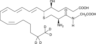 | SMILES | N[C@H](C(NCC(O)=O)=O)CS[C@@H]([C@@H](O)CCCC(O)=O)/C=C/C=C/C=C\C/C=C\CCCC([2H])([2H])C([2H])([2H])[2H] |