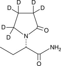 Levetiracetam-d6 is intended for use as an internal standard for the quantification of levetiracetam (Item No. 9001820) by GC- or LC-MS. Levetiracetam is an antiepileptic agent that binds to the synaptic vesicle protein SV2A (IC50 = 1.99 ?M).{23279} In vivo, levetiracetam suppresses seizures in fully kindled rats.{23283}