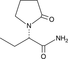 Levetiracetam is an antiepileptic agent that binds to the synaptic vesicle protein SV2A (IC50 = 1.99 ?M).{23279} In vivo, levetiracetam suppresses seizures in fully kindled rats.{23283}