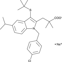 | Smiles | CC(C)(C([O-])=O)CC1=C(SC(C)(C)C)C2=CC(C(C)C)=CC=C2N1CC3=CC=C(Cl)C=C3.[Na+] |