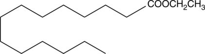 Myristic acid is a saturated fatty acid commonly found in animal and vegetable fats that is frequently used in cosmetics, soaps, perfumes, and flavorings. It increases low density lipoprotein cholesterol making it one of the most hypercholesterolemic of the saturated fatty acids.{14160} Myristic acid ethyl ester is a more hydrophobic form of the free acid. It is a marker of excessive ethanol consumption that can be isolated from the hair of an individual.{14159}