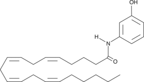 N-(3-hydroxyphenyl)-Arachidonoyl amide (3-HPA) is an analog of AM404 (N-(4-hydroxyphenyl)-arachidonoyl amide), which is a selective inhibitor of carrier-mediated transport of arachidonoyl ethanolamide (AEA).{4894} 3-HPA is metabolized by both cyclooxygenase-1 (COX-1) and COX-2 and was found to selectively and irreversibly inhibit COX-2 with an IC50 value of 2 µM.{14589}