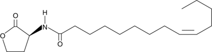 Quorum sensing is a regulatory process used by bacteria for controlling gene expression in response to increasing cell density.{15370} This regulatory process manifests itself with a variety of phenotypes including biofilm formation and virulence factor production.{13434} Coordinated gene expression is achieved by the production, release, and detection of small diffusible signal molecules called autoinducers. The N-acylated homoserine lactones (AHLs) comprise one such class of autoinducers, each of which generally consists of a fatty acid coupled with homoserine lactone (HSL). AHLs vary in acyl group length (C4-C18), in the substitution of C3 (hydrogen, hydroxyl, or oxo group) and in the presence or absence of one or more carbon-carbon double bonds in the fatty acid chain. These differences confer signal specificity through the affinity of transcriptional regulators of the LuxR family.{15398} C14:1-?9-cis-(L)-HSL is a long-chain AHL that functions as a signaling molecule in the quorum sensing of A. vitis.{15831} Regulating bacterial quorum sensing signaling can be used to inhibit pathogenesis and thus, represents a new approach to antimicrobial therpy in the treatment of infectious diseases.{15369}