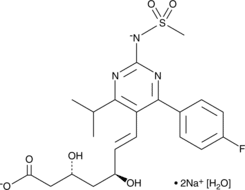 | Smiles | O[C@@H](C[C@@H](O)CC([O-])=O)/C=C/C(C(C1=CC=C(F)C=C1)=NC([N-][S](C)(=O)=O)=N2)=C2C(C)C.[Na+].[Na+].O |