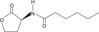 Quorum sensing is a regulatory system used by bacteria for controlling gene expression in response to increasing cell density. A promising field of study involves controlling bacterial infections by quenching their quorum sensing systems. The expression of specific target genes, such as transcriptional regulators belonging to the LuxIR family of proteins, is coordinated by synthesis of diffusible acylhomoserine lactone (AHL) molecules. N-hexanoyl-L-Homoserine lactone is a small diffusible signaling molecule involved in quorum sensing, controlling gene expression, and affecting cellular metabolism.{13434} The diverse applications of this molecule include regulation of virulence in general and in cystic fibrosis, infection prevention, slime and biofilm reduction in commercial agriculture and aquaculture industries, food spoilage prevention, and septicemia in fish.{14089,14090,14091,14092,14093,14094,14095}