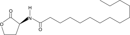 Quorum sensing is a regulatory system used by bacteria for controlling gene expression in response to increasing cell density. Controlling bacterial infections by quenching their quorum sensing systems is a promising field of study. The expression of specific target genes, such as transcriptional regulators belonging to the LuxR family of proteins, is coordinated by the synthesis of diffusible acylhomoserine lactone (AHL) molecules. N-tetradecanoyl-L-Homoserine lactone (C14-HSL) is a small diffusible signaling molecule involved in quorum sensing, thereby controlling gene expression and affecting cellular metabolism in bacteria.{16305,16307,16308} It appears later than shorter acyl chain AHLs in developing biofilms{16592} and, like other long chain AHLs, stimulates bacterial growth.{16595} C14-HSL also alters the proteolytic activity and enhances the migration of some strains of Proteus mirabilis.{16596}