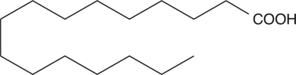 Palmitic acid is a common 16-carbon saturated fat that represents 10-20% of human dietary fat intake and comprises approximately 25 and 65% of human total plasma lipids and saturated fatty acids, respectively.{45765,1935} Acylation of palmitic acid to proteins facilitates anchoring of membrane-bound proteins to the lipid bilayer and trafficking of intracellular proteins, promotes protein-vesicle interactions, and regulates various G protein-coupled receptor functions.{45765} Palmitic acid (200 µM) increases NF-?B p65 levels, matrix metalloproteinase-9 (MMP-9) activity, and production of reactive oxygen species (ROS) in AsPC-1 pancreatic cancer cells, as well as increases migration of AsPC-1 cells.{45766} It increases COX-2 levels in RAW 264.7 cells and increases LPS-induced IL-1? levels and caspase-1 activity in isolated mouse peritoneal macrophages.{10646,45767} Dietary administration of palmitic acid (2.2% w/w for 12 weeks) increases mouse hippocampal ?-secretase 1 (BACE1) activity and amyloid ? (1-42) (A?42; Item No. 20574) levels.{45768} It also induces systolic contractile dysfunction in isolated mouse hearts.{45769} Red blood cell palmitic acid levels are increased in patients with metabolic syndrome compared to patients without metabolic syndrome and are also increased in the plasma of patients with type 2 diabetes compared to individuals without diabetes.{45771,45772}