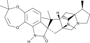 Paraherquamide E is a fungal metabolite originally isolated from P. charlesii with anthelmintic and insecticidal activities.{47169,46108,46107} It is lethal to C. elegans (LD50 = 6 ?g/ml).{47169} Paraherquamide E is also lethal to O. fasciatus (LD50 = 0.089 ?g/nymph).{46108} Oral administration of paraherquamide E (0.5-4 mg/kg) reduces T. colubriformis fecal egg count in gerbils.{46107}