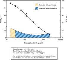 Prostaglandin D2 (PGD2) is biosynthesized in the brain by a soluble, 26 kDa glutathione-independent lipocalin-type PGD2 synthase. This PGD2 accumulates in the cerebrospinal fluid (CSF), where it induces physiologic sleep in rats and humans. PGD2 is also synthesized in mast cells and leukocytes by a cellular, myeloid-type, glutathione-dependent PGD synthase. This PGD2 which is formed in the intracellular and vascular compartments is rapidly metabolized to 11?-PGF2? and other metabolites. Measurement of the parent eicosanoid PGD2 is appropriate in cell culture lysates and in CSF, where concentrations of several hundred pg/ml have been measured. Cayman’s PGD2 ELISA Kit is a competitive assay that can be used for quantification of PGD2 in cell culture lysates and enzymatic reactions.