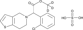 (S)-(+)-Clopidogrel-d3 is intended for use as an internal standard for the quantification of (S)-(+)-clopidogrel (Item No. 21002) by GC- or LC-MS. (S)-(+)-Clopidogrel is the functional enantiomer of clopidogrel (Item No. 13657) and a prodrug whose thiol metabolite antagonizes purine binding to the platelet purinergic receptor P2Y12 (Ki = 316 nM in human platelets).{19256} It is metabolized by the cytochrome P450 (CYP) isoform CYP2C19 in rat liver and inhibits ADP-induced platelet aggregation ex vivo.{19259} Formulations containing (S)-(+)-clopidogrel have been used in combination with aspirin to prevent vascular ischemic events in patients with acute coronary syndromes.