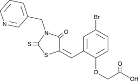 | Smiles | BrC1=CC=C(OCC(O)=O)C(/C=C2C(N(CC3=CC=CN=C3)C(S2)=S)=O)=C1, BrC1=CC=C(OCC(O)=O)C(/C=C2C(N(CC3=CC=CN=C3)C(S2)=S)=O)=C1, BrC1=CC=C(OCC(O)=O)C(/C=C2C(N(CC3=CC=CN=C3)C(S2)=S)=O)=C1 |