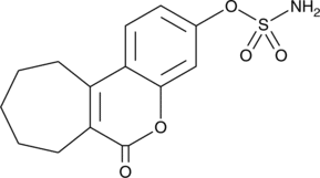 STX-64 is a steroid sulfatase inhibitor (IC50 = 0.008 µM in placental microsomes).{57682} It also inhibits carbonic anhydrase II (CAII; IC50 = 0.025 µM).{57685} STX-64 inhibits LPS-induced production of nitric oxide (NO) and prostaglandin E2 (PGE2; Item No. 14010) in RAW 264.7 macrophages (IC50s = 85.76 and 0.081 µM, respectively).{57683} It reduces rat liver steroid sulfatase activity when administered at a dose of 1 mg/kg.{57682} STX-64 (2 mg/kg) inhibits estrone sulfate-induced uterine growth and reduces the growth of N-nitroso-N-methylurea-induced, estrone sulfate-maintained mammary tumors in ovariectomized rats.{57684}
