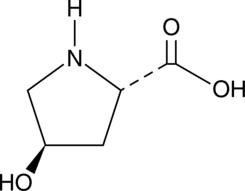 trans-4-hydroxy L-Proline is a non-essential amino acid that is commonly used as a chiral building block in the organic synthesis of various compounds.{43500} It is a constituent of collagen and elastin and has been found in many bacterial secondary metabolites, including echinocandins.