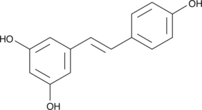 trans-Resveratrol is a polyphenol that has been found in grapes and has diverse biological activities.{3491,43362} It inhibits the cyclooxygenase and hydroperoxidase activities of COX-1 (EC50s = 15 and 3.7 ?M, respectively) but not COX-2 (EC50s = >100 ?M and 85 ?M, respectively).{3491} trans-Resveratrol (200 ?M) also activates sirtuin 1 (SIRT1), as well as inhibits a variety of targets including ERK1, JNK1, Src, PKC?, aromatase/CYP19, and DNA polymerases ? and ? (IC50s = 37, 50, 20, in vitro.{13296,43362} It inhibits free radical formation induced by phorbol 12-myristate 13-acetate (TPA; Item No. 10008014) in HL-60 cells and reduces the tumor incidence and number of tumors in a two-stage mouse model of skin cancer induced by TPA and 7,12-dimethyl-benz[a]anthracene (DMBA). trans-Resveratrol (3 and 8 mg/kg) inhibits carrageenan-induced paw edema in mice. Intravaginal administration of trans-resveratrol (12.5% v/v) inhibits herpes simplex virus 1 (HSV-1) and HSV-2 replication and delays the development of extravaginal disease in mouse models of vaginal HSV infection.{60119} It also prolongs lifespan in model organisms including C. elegans, D. melanogaster, and mice.{43362}