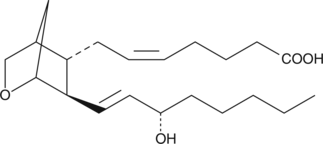U-46619 is a stable analog of the endoperoxide prostaglandin H2, and a TP receptor agonist.{8322} It exhibits properties similar to thromboxane A2, causing platelet shape change and aggregation, and contraction of vascular smooth muscle.{490,714} Mean EC50 values for shape change in human, rat, and rabbit platelets are 4.8, 6.0, and 7.3 nM respectively, and for aggregation are 82, 145, and 65 nM, respectively.{1168}