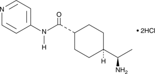 The ROCK family of Rho-associated serine-threonine protein kinases is known to play an important role in Rho-mediated cell adhesion and smooth muscle contraction. Y-27632 is a potent, ATP-competitive inhibitor of ROCKs including p160ROCK (Ki = 140 nM) and ROCK2 (IC50 = 800 nM). It also inhibits PRK2 with an IC50 value of 600 nM.{12847,15085} One-hour treatment with 10 µM Y-27632 blocks apoptosis of dissociated cultured human embryonic stem cells, increasing cloning efficiency by 25% and sustaining survival up to 30 passages.{17322}